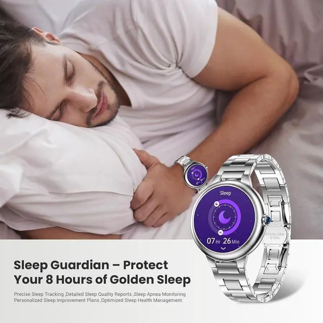 Scientific Health Management SystemRun a 3-minute HRV-based breathing stress test to get a 0100 stress index and receive relaxation suggestions. The sedentary reminder and hydration reminder features help you develop better daily habits through user-defined alerts. Sleep stage tracking (deep sleep/REM) combined with respiration analysis improves rest quality, enhancing sleep efficiency by up to 37% (lab data)making it a great health smartwatch for everyday wellness.