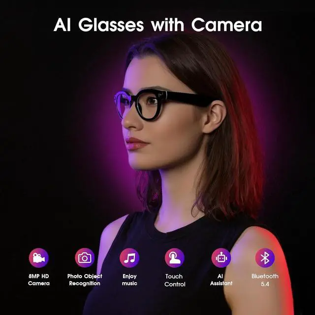 8MP HighDefinition Camera & Clear AudioCapture sharp 1080p video and detailed photos with an integrated 8MP camera and integrated microphone array for immersive, crystalclear audio. These glasses with camera and audio help review every moment in vivid clarity and play it back anytime via the HeyCyan app.
