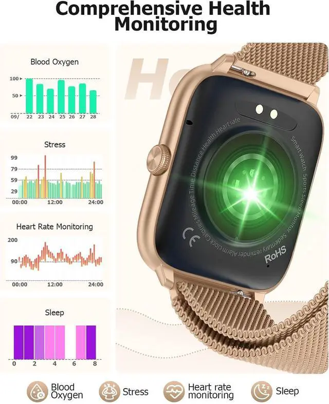 BLUETOOTH CALLING & SMART NOTIFICATIONS Make and take calls directly from your smartwatch with crystal-clear audio. Stay connected with real-time alerts for calls, texts, and apps like Facebook, WhatsApp, and Instagramso you never miss a thing. Plus, the built-in AI voice assistant lets you go hands-free for ultimate convenience