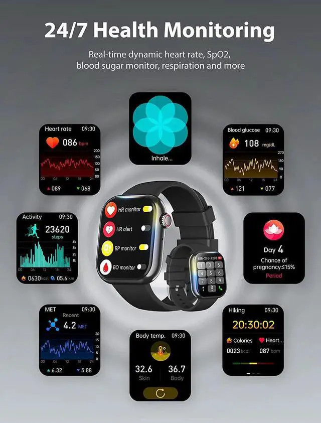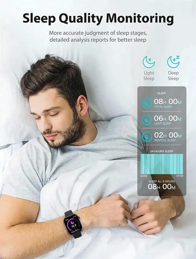 [24/7 Real-Time Health and Sleep Monitor] Adopts an advanced optical sensor chip with an intelligent algorithm, automatically monitor your real-time health data all day (SpO2, heart rate, and temperature).