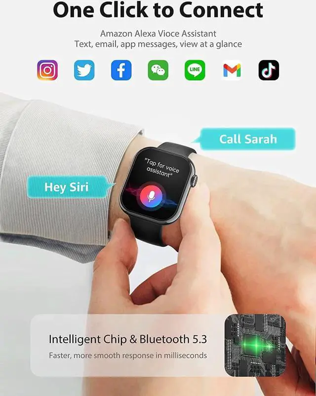 [Answer/Make Call & Smart Notifications] BLE version 5.3 for one-click connection, farewell to cumbersome steps also get faster and more stable connection. Built-in microphone and speaker, allowing you to answer and make calls directly, add contacts and view call records on the watch.