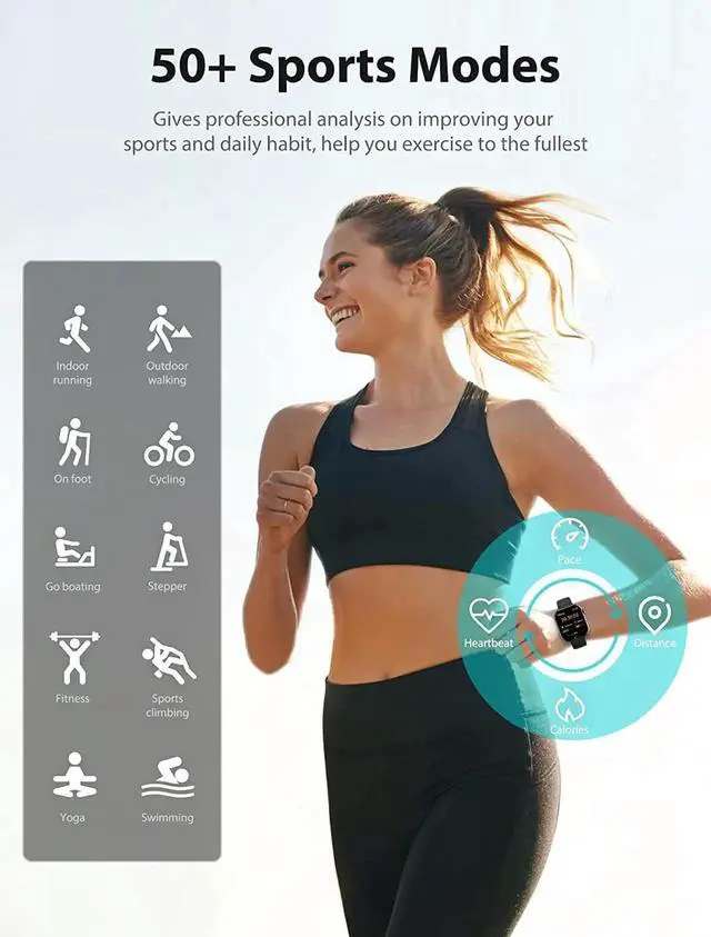 [50+ Sport Modes & GPS Fitness Tracker] Smart fitness watch covers 50+ sports modes: running, climbing, cycling, yoga, football, etc. Allowing you to get data for all your favorite sports.