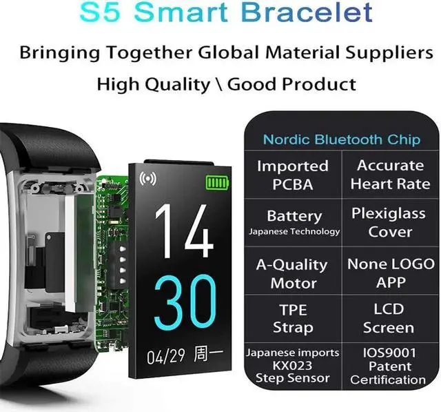 Features: Sedentary Reminder Keep moving toward your goals with friendly reminders that encourage you to stay active throughout the day. Sleep Quality Monitor A good night's sleep helps you wake up physically refreshed and mentally sharp. The tracker records your sleep automatically, measuring wake, light and deep sleep, and wakes you up with silent vibrating alarms IP68 Water Resistant IP68 waterproof index of the tracker helps you care free while swimming, diving or taking a shower. It only needs to be taken off before a hot bath. Shake Photos Shaking your wrist to take a picture. To record every memorable moments. Message & Call Reminder It will vibrate and show the information/the caller name when receiving income message/call. It will also push the notifications from Facebook/Twitter/Whatsapp and other APP. USB Charge, No Cable Needed Take the bands off the tracker body and insert the tracker into a USB charger for charging. Only 2 hours' charging allows up to 5-7 days' use.