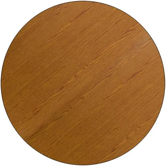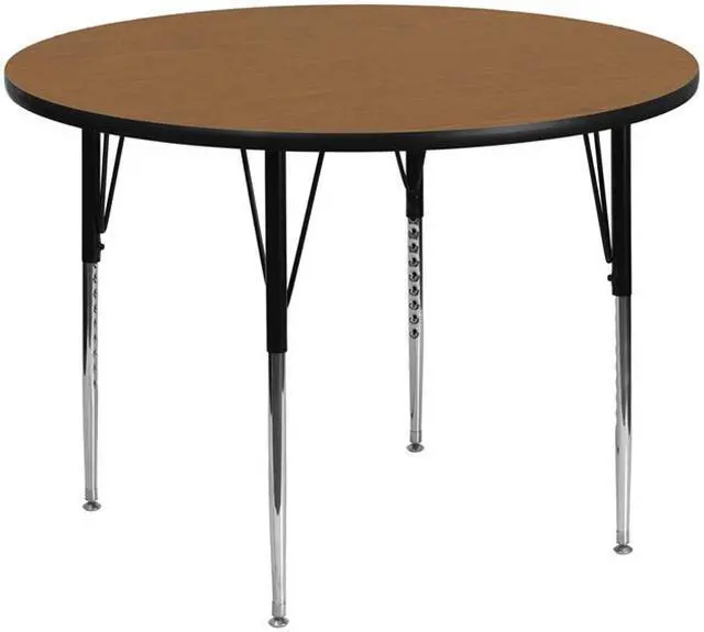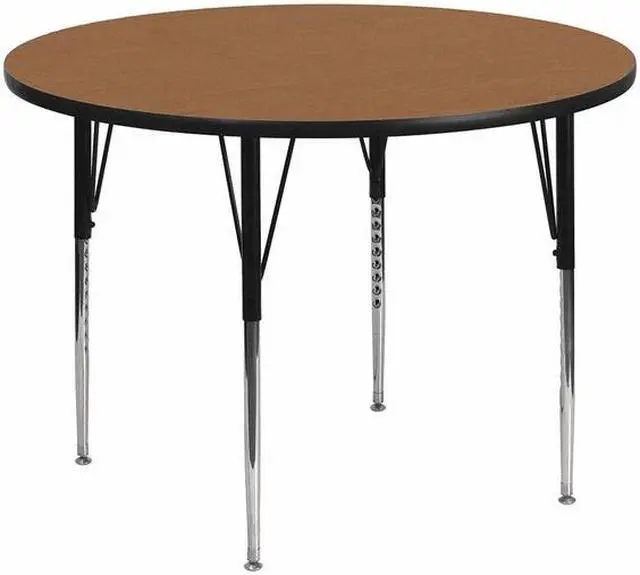 The Round Activity Table is a versatile option for school classrooms, corporate training centers and your home. Enhance collaborative learning by grouping tables together. It will accommodate children of all ages, from 1st grade to adult.It features a 42'' thermal fused scratch, stain and warp resistant laminate top with a black edge band and 16 gauge tubular steel legs for increased stability. The top incorporates a protective underside backing sheet to prevent moisture absorption and warping. An attractive black powder coated finish protects the upper legs from scratches and height adjustable chrome lower legs give you the flexibility to raise or lower the table a full 9 inches in 1 inch increments. Self-leveling nylon floor glides keep the table from wobbling and protect your floor by sliding smoothly when you need to move it.This activity table provides a durable work surface for anything from computer labs to project meetings to laying out fabric in your sewing room.