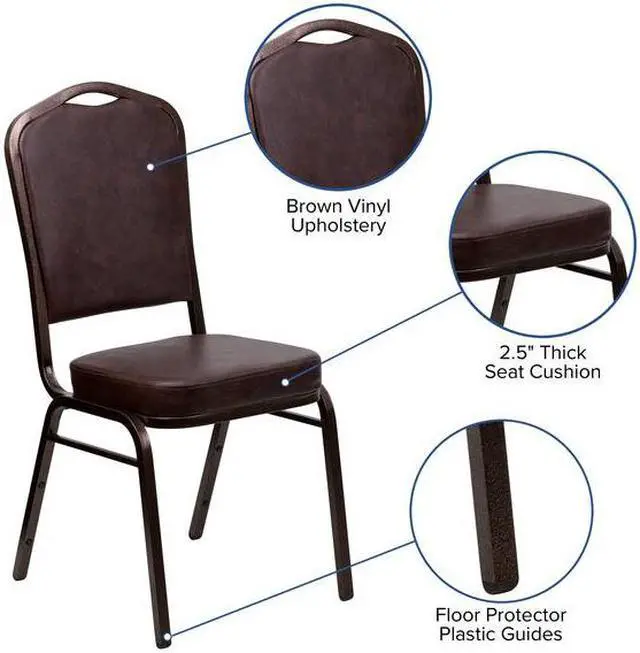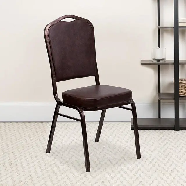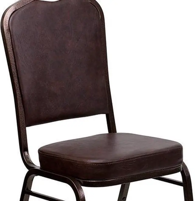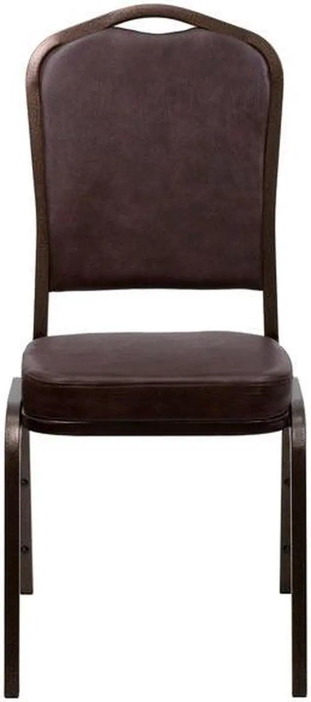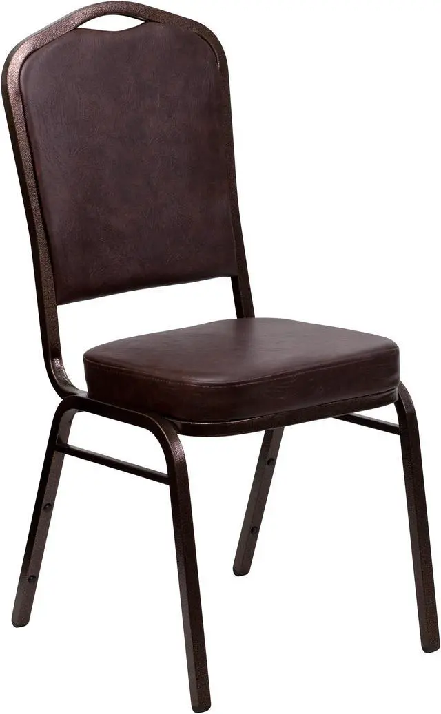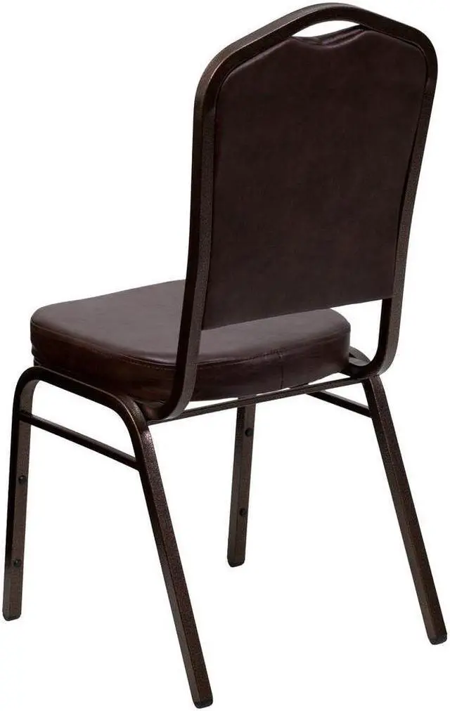 HERCULES Series Crown Back Stacking Banquet Chair in Brown Vinyl - Copper Vein Frame