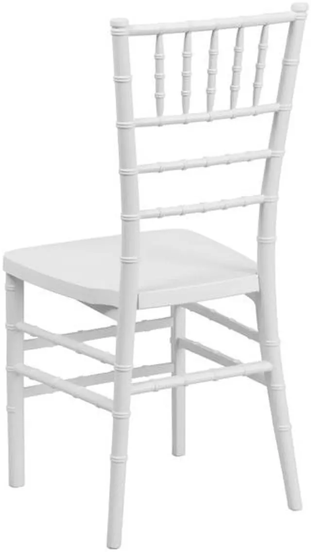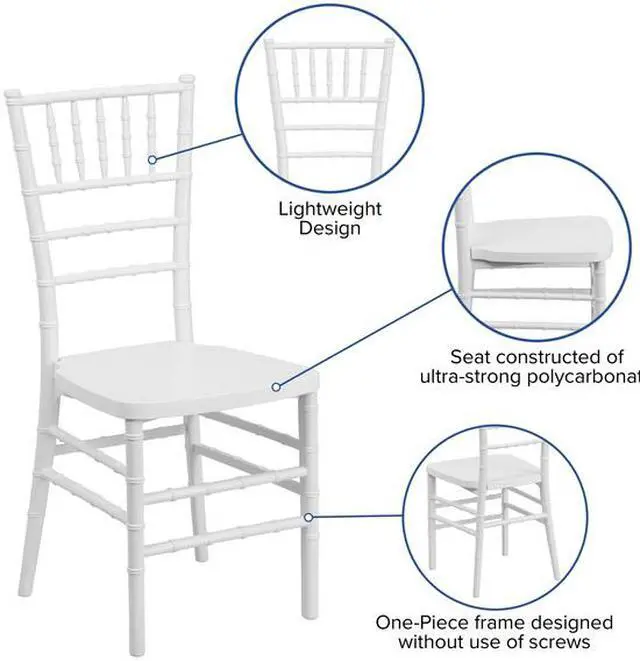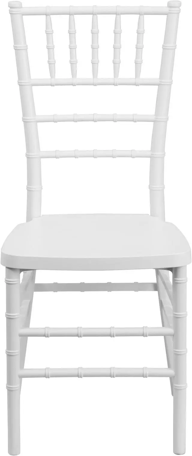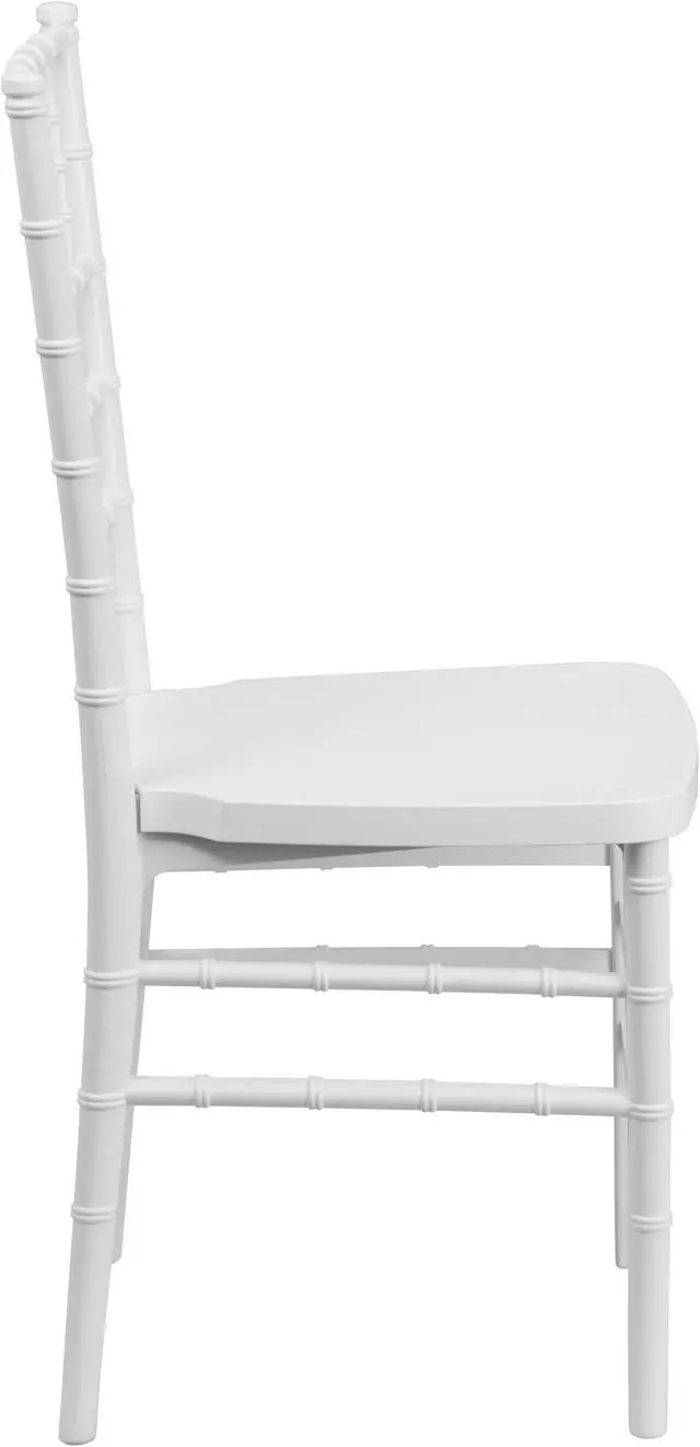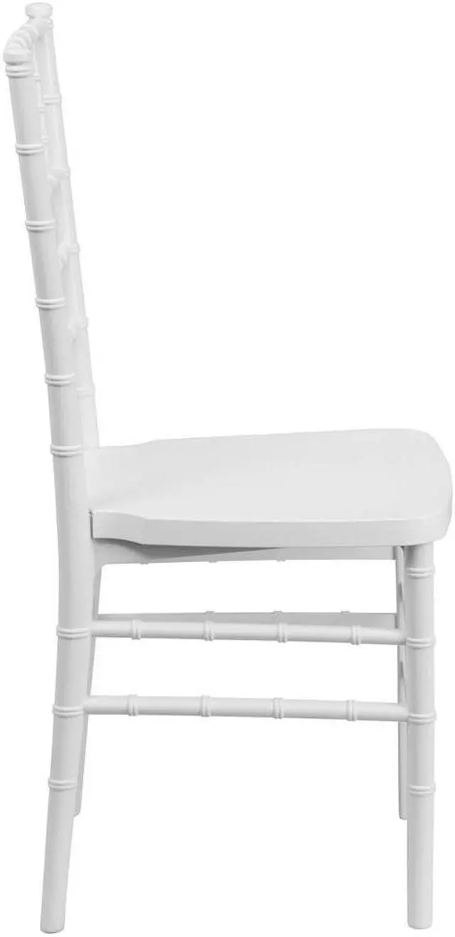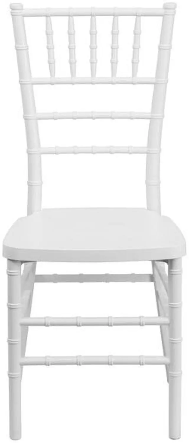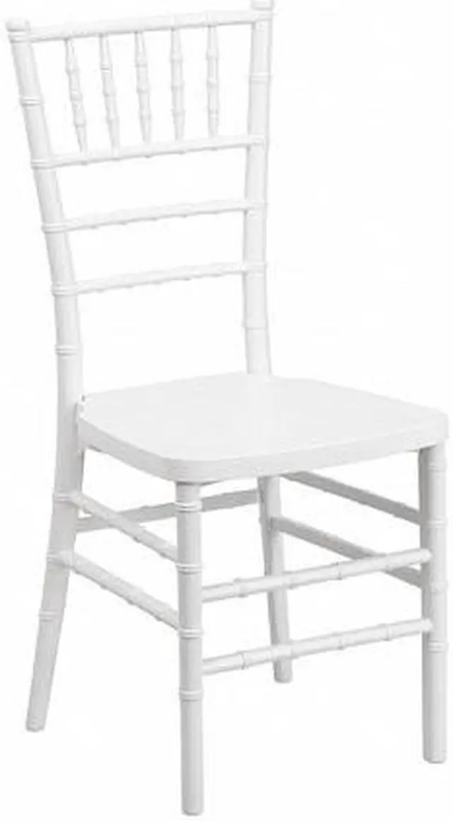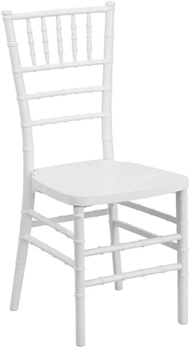 Elegance and sophistication are the hallmarks of the Chiavari style chair which has been used everywhere from Tuscany to the White House and is ideal for weddings, banquets and special events from casual to the most elaborate. Constructed of ultra-strong resin and polycarbonate materials, this chair is very lightweight, yet extremely strong and wobble-free. These beautiful resin chairs ship fully assembled and can be stacked 8 high for storage. With its durable, lightweight construction and elegant styling, this White Stacking Chiavari Chair will be the prime seating choice for all of your special events, whether indoors or outside.Product Dimension-15.75"W x 18.5"D x 36.5"H