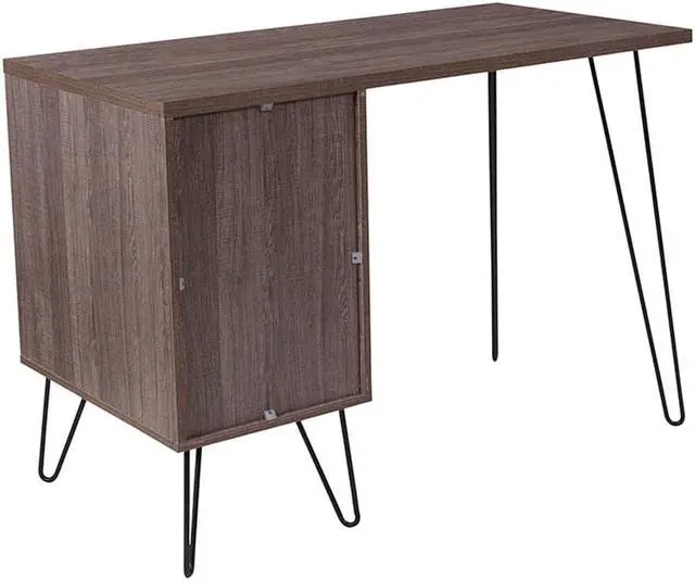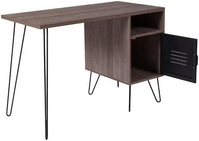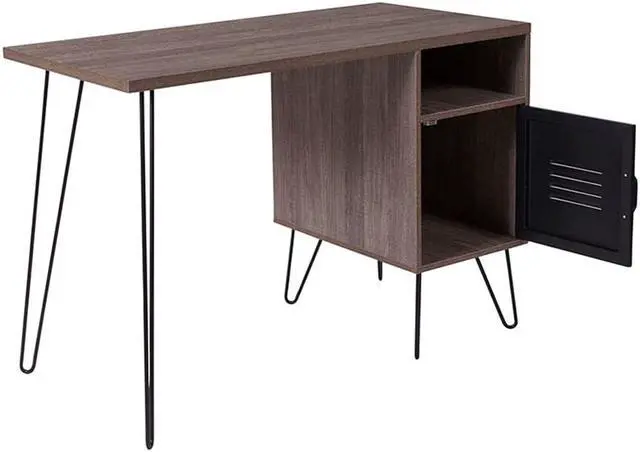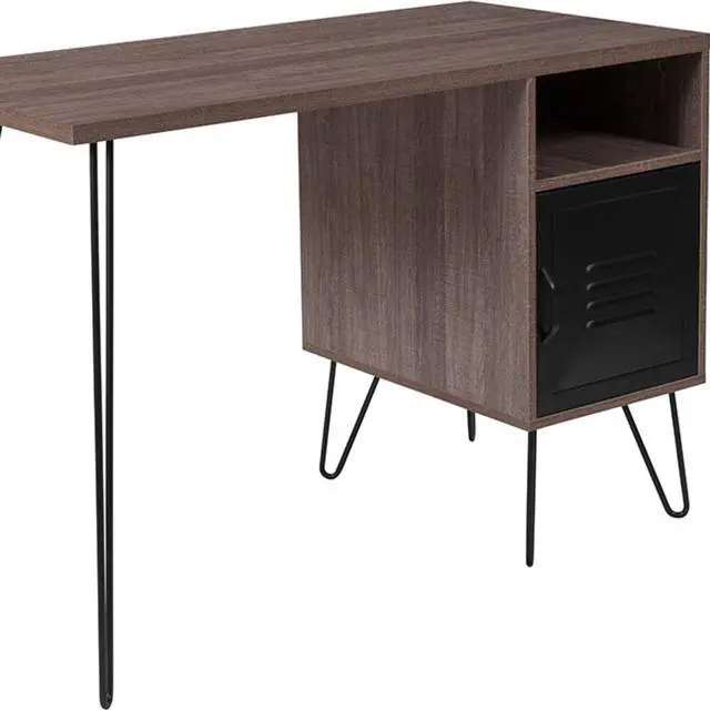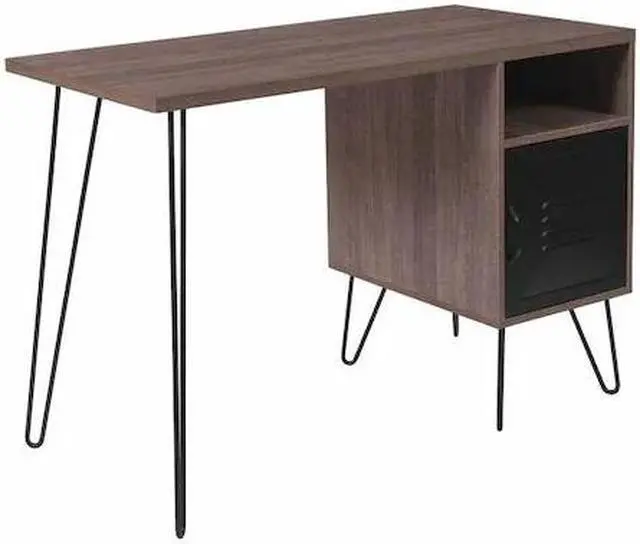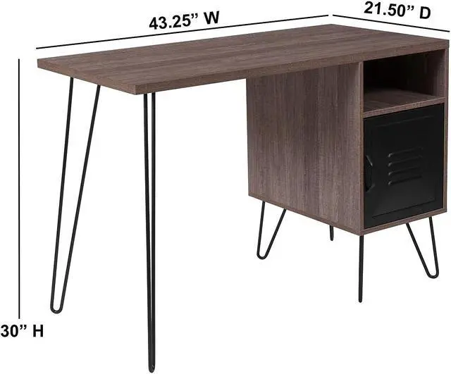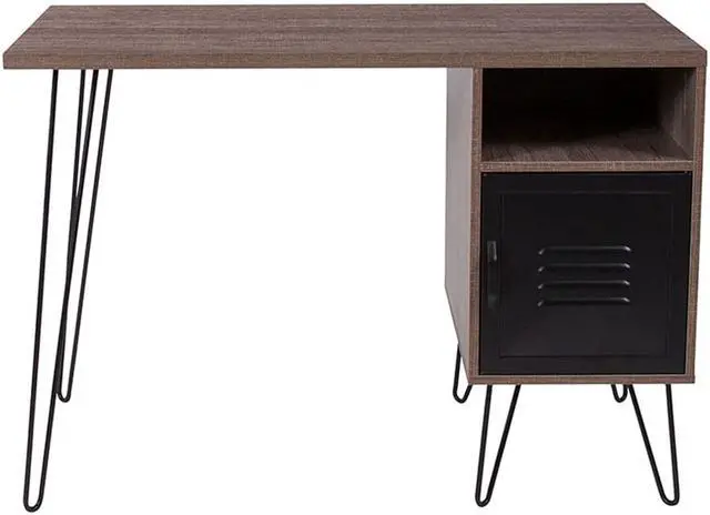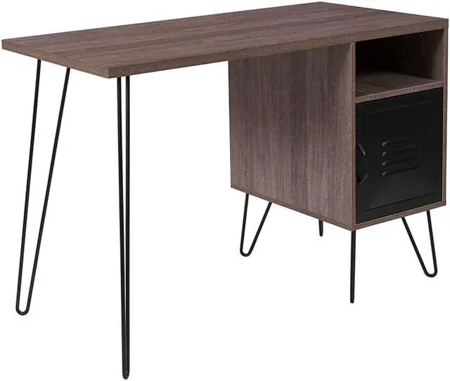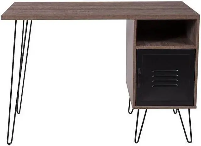Flash Furniture NAN-JN-21735T-GG Woodridge Collection Rustic Wood Grain Finish Computer Desk with Metal Cabinet Door & Black Metal Legs