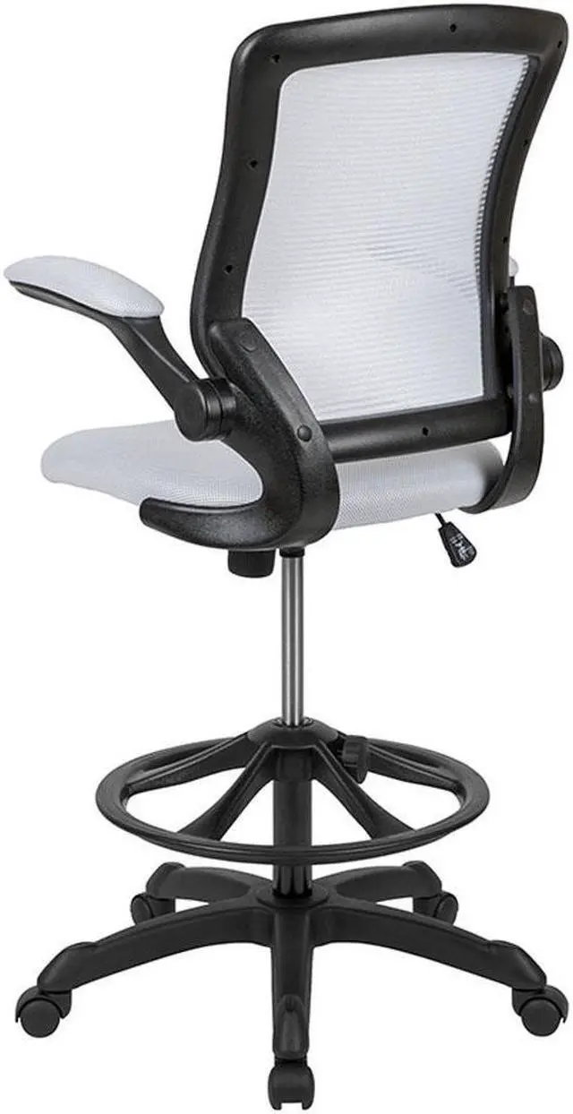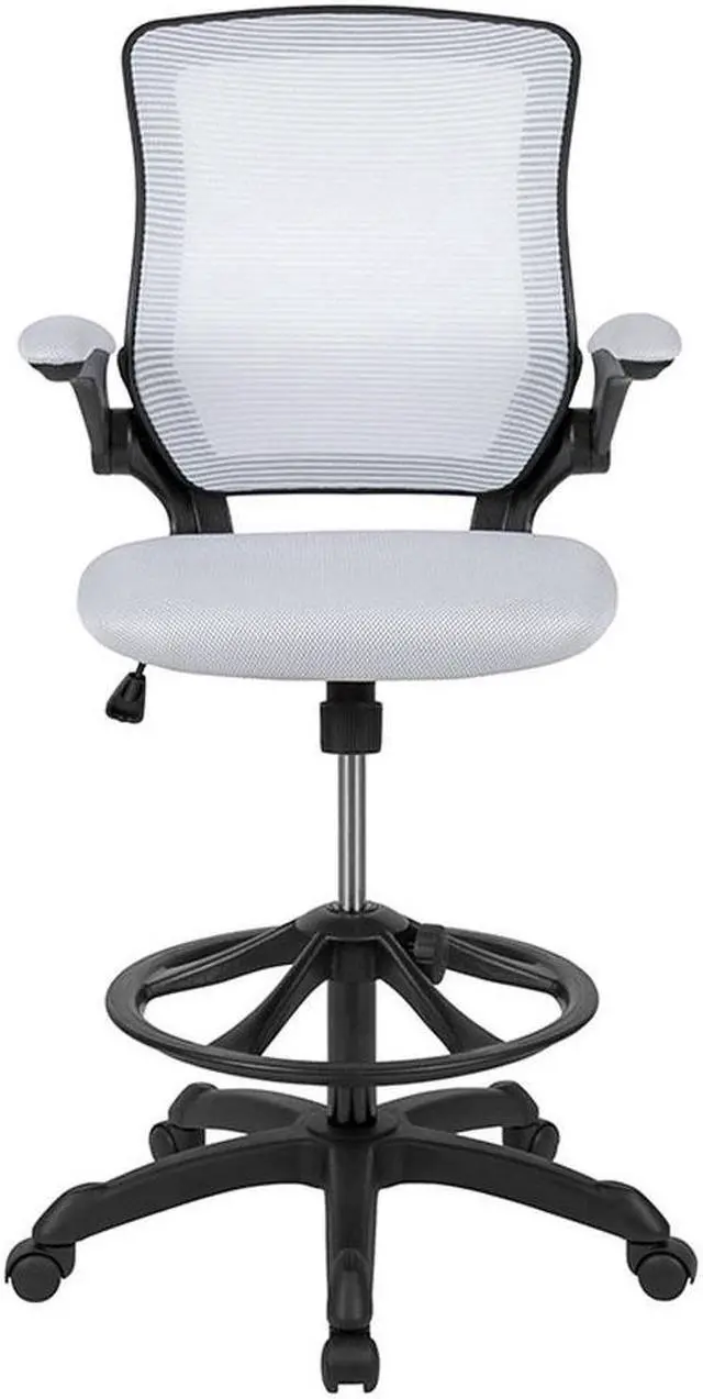 Mid-Back White Mesh Ergonomic Drafting Chair with Adjustable Foot Ring and Flip-Up Arms