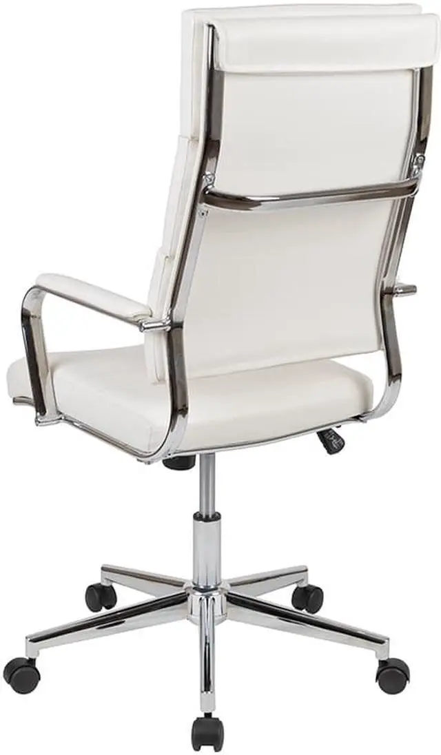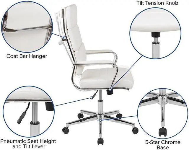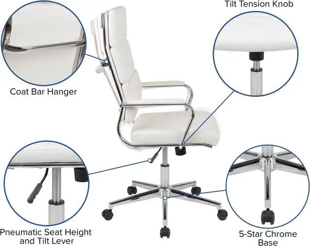Bring your office into the new age with this stunning executive office chair. The panel back desk chair is easy on the eyes to bring instant value to your workspace. Impressive chrome arms with a padded layer provide support to your upper body while looking exquisite. Make a powerful impact in your conference room when taking meetings with clients and buyers with these high back conference chairs. Drape your jacket over the coat hanger bar to prevent from falling when getting in and out the chair. Adjust the chair to your desired height by utilizing the lever underneath the seat that also locks the chair in an upright position.
