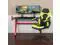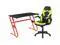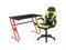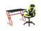Let the games begin on this gaming desk and chair set. A sleek, red z-frame offers stability and style for a cool looking desk setup. The black top gamers table has two grommets for cable management, a detachable cup holder and headset holder to keep you in game mode. The racing game chair have flip-up arms to comfortably rest your arms on while handling the controller or flip-up to slide under the desk. Be true to the gaming experience with a desk and chair combo designed for gaming systems. A spacious desktop that can hold up to 2 monitors adds more excitement to the game.