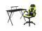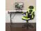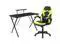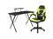 Let the games begin on this gaming desk and chair set. Not only cool to look at but the raised platform keeps your PC monitor at eye level, reducing neck strain. The black top gamers table has a grommet for cable management, a detachable cup holder and headset holder to keep you in game mode. The racing game chair have flip-up arms to comfortably rest your arms on while handling the controller or flip-up to slide under the desk. Be true to the gaming experience with a desk and chair combo designed for gaming systems. If you need more desk space, remove the platform to accommodate dual monitors. Use the cup holder to prevent beverages from spilling on your pc gaming keyboard. The comfortably padded ergonomic gaming chair has a full swivel cylinder and adjusts with the pneumatic lever. Tilt back with ease by pulling the lever outward, control the force needed to recline by turning the knob underneath the seat. Made for gamers, this gaming desk and chair bundle will get you on your way to leveling up.
