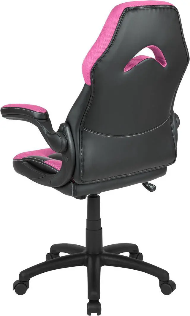 If you're playing on your computer and want to get closer to the action the arms flip backward to pull yourself underneath the desk without having to adjust the seat height. The tilt lock mechanism underneath the seat locks in an upright position when you no longer want to lean and rock back. To be considePink a true gamer you need a dedicated gaming chair to take your gaming to new heights, whether you have followers who watch you on a streaming service or like to interact with other gamers online.