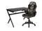 Let the games begin on this gaming desk and chair set. The black top gamers table has 2 grommets for cable management, a detachable cup holder and headset holder to keep you in game mode. The racing game chair have flip-up arms to comfortably rest your arms on while handling the controller or flip-up to slide under the desk. Be true to the gaming experience with a desk and chair combo designed for gaming systems. This PC gaming desk has a spacious, lightweight carbon fiber top that lends superior strength and prevents rust and corrosion while the low thermal expansion properties preserve fiber integrity to extend the lifetime of the desktop.