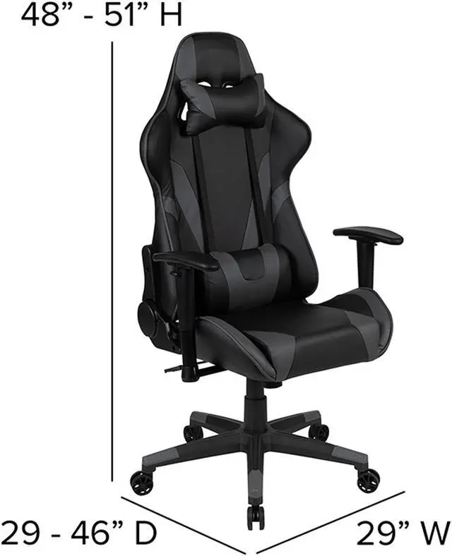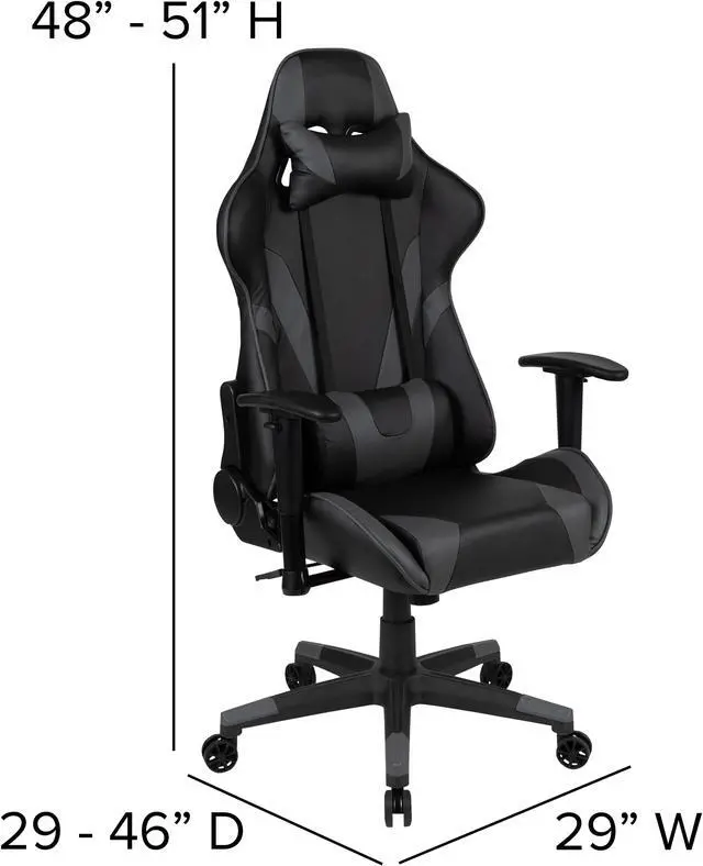 Set yourself up to put on a performance at your new gaming computer desk set with racing gaming chair. This gaming desk and chair set will put you ahead of the game world with its ultra-comfortable headrest and lumbar pillows that can be adjusted or removed. With a reclining office chair that reclines 87° ~ 145° with a pull of a lever you're positioned to take down any opponent. If you're on the market to upgrade your old desk and chair set or you've gotten into gaming more and need gaming furniture then this gamers bundle offers the perfect combination at an unbeatable price.