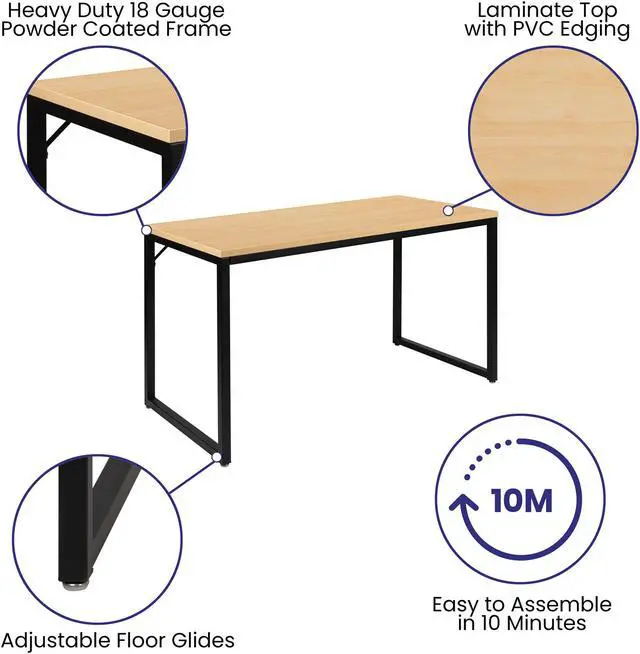 Whether you need a simple style computer desk to furnish your new office suite or are working from home this industrial style office desk offers plenty of tabletop workspace, clean lines, and an elegant modern look suitable for any professional or home decor. Dependable computer furniture is necessary to navigate your business and team members towards success. The ultra-strong 18 gauge metal frame is powder coated to resist damage and will support up to 250 lbs. of static weight. Adjustable floor glides to accommodate uneven flooring to give users a level work surface. No complicated setup gives you full use of your PC computer office table in about 10 minutes without breaking a sweat. Create an office, writing or study space in your loft, living room, or bedroom while maintaining an open concept. This open framed office table was built for commercial settings but is well-suited for home use. With its minimalistic style, you can effortlessly convert this work desk into your game table or dining table.Product Dimension-47.25"W x 23.5"D x 29.5"H