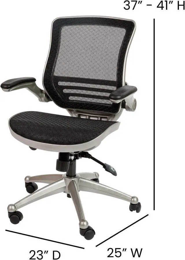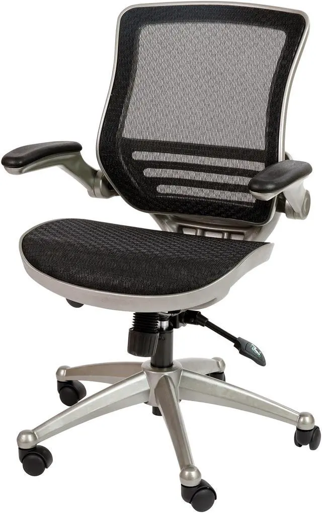 If you need to move from one work surface to another, the heavy duty nylon base and dual wheel casters on this mesh swivel office chair will make it feel effortless. Spills clean up easily with a solvent based cleaner, no water required. Whether you go to the office or work from home this office chair with flip up arms will keep you comfortable as you navigate through your day-to-day tasks.