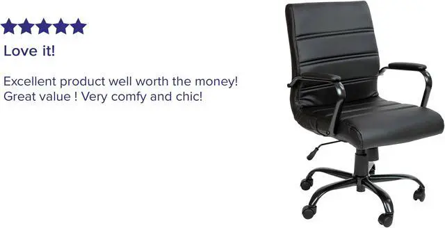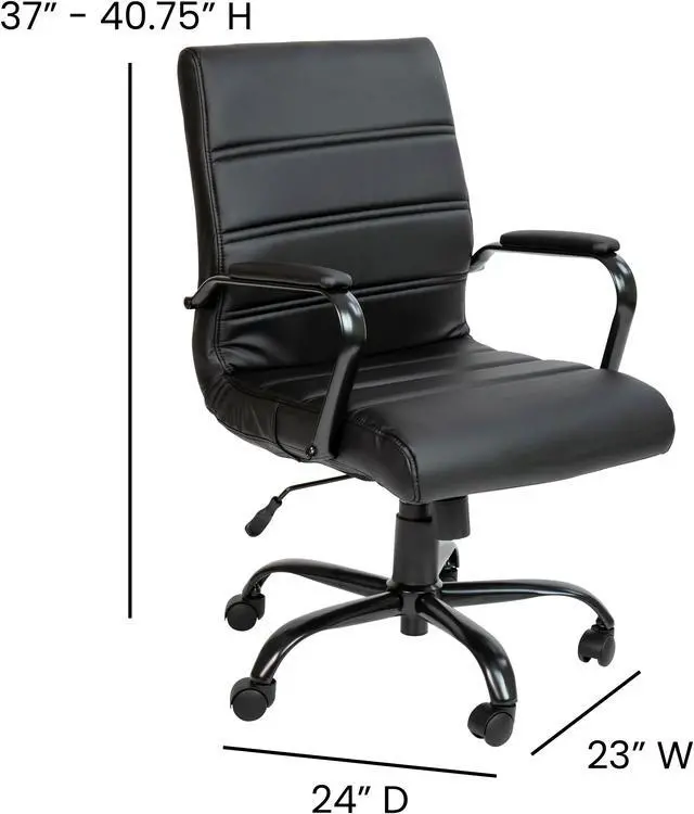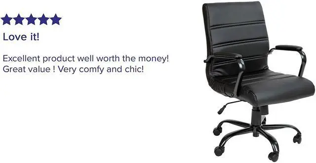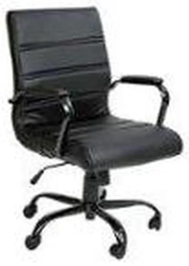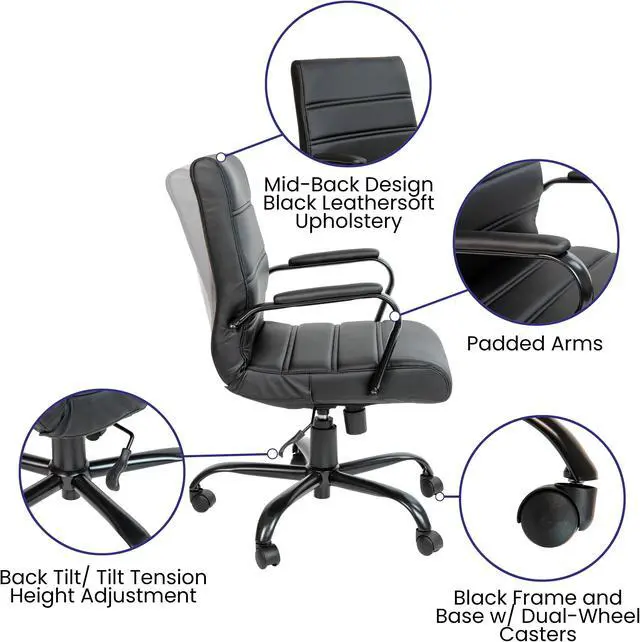 Toss out that old and boring office chair that you've had for years because it's time for an upgrade with this sleek mid-back LeatherSoft office chair. No longer used in just offices, you are seeing office chairs used in nail salons, car shops, and stores to help busy workers achieve maximum comfort while performing their work duties. Upholstered in soft and durable LeatherSoft upholstery and paired with a black base help construct this modern office chair. Designed with your comfort in mind, this ergonomic desk chair features ample padding to get you through an 8-hour workday or be your seating of choice to furnish your conference room.