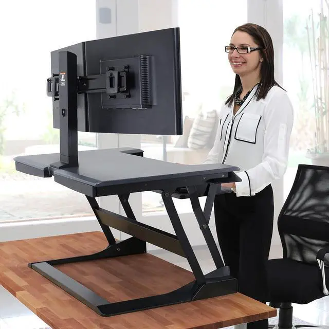 Out-of-box-design: Get up and moving around your workspace in minutes with no assembly, mounting or clamping required; includes desk converter, non-slip pads, cable management sleeve and zip tie
