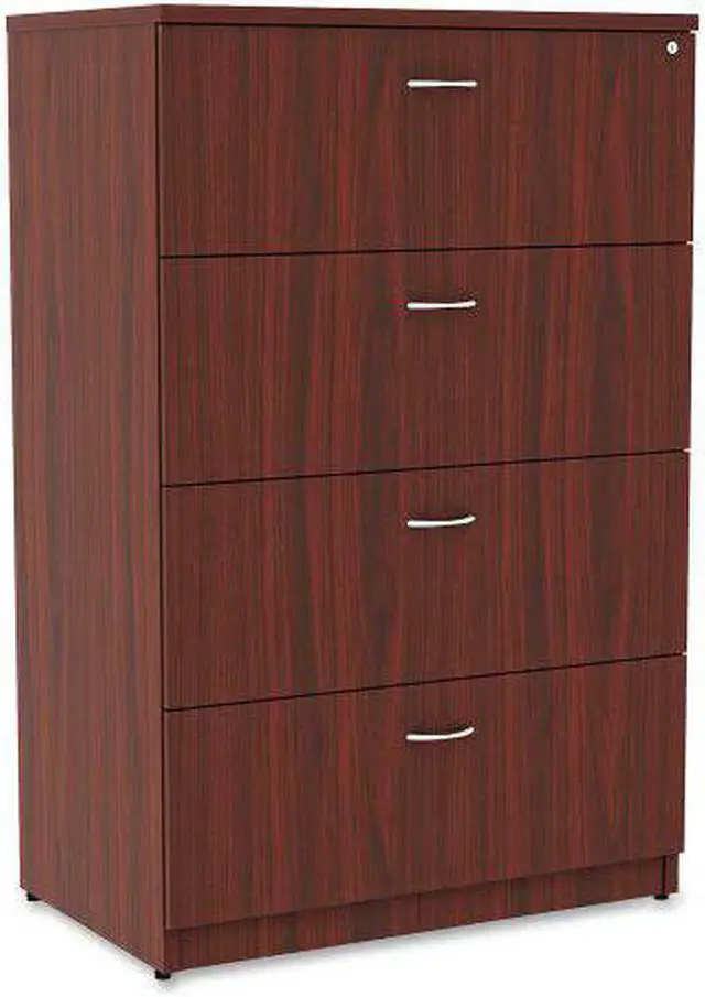 • Top, 35.5" x 22" x 54.8" - 4 x File Drawer(s) - Material: Polyvinyl Chloride (PVC) Edge - Finish: Mahogany Laminate