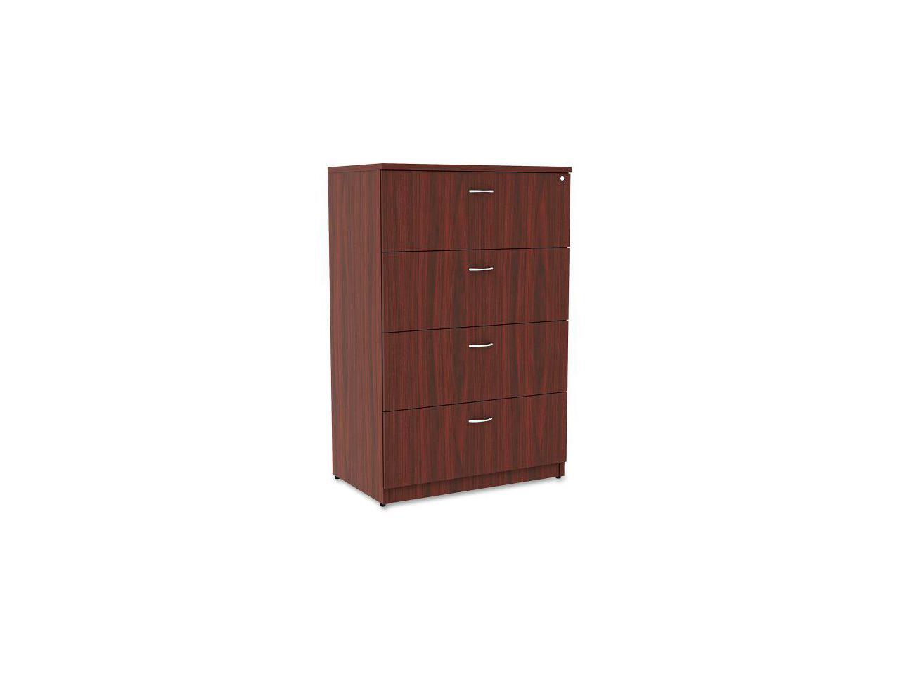 - Top, 35.5" x 22" x 54.8" - 4 x File Drawer(s) - Material: Polyvinyl Chloride (PVC) Edge - Finish: Mahogany Laminate