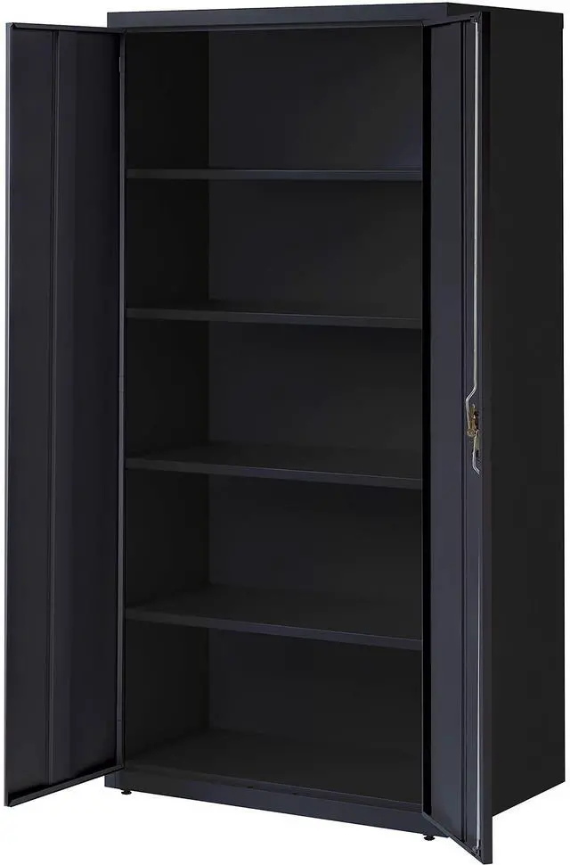 • 24" x 36" x 72" - 5 x Shelf(ves) - Hinged Door(s) - Sturdy, Recessed Locking Handle, Removable Lock, Durable, Storage Space - Black - Powder Coated - Steel - Recycled - Assembly Required