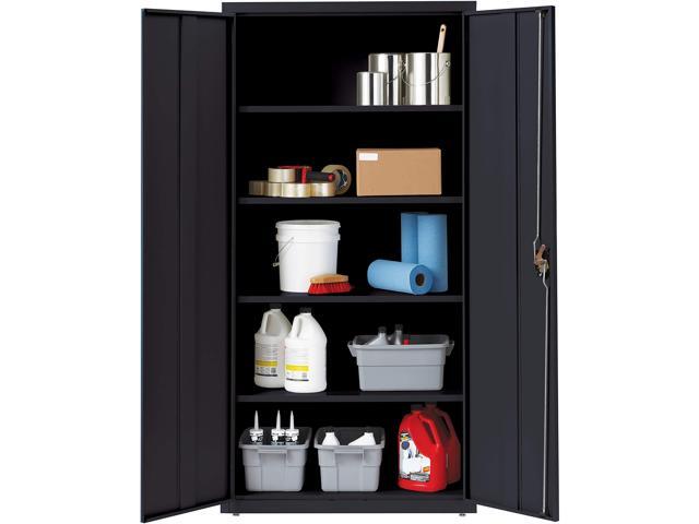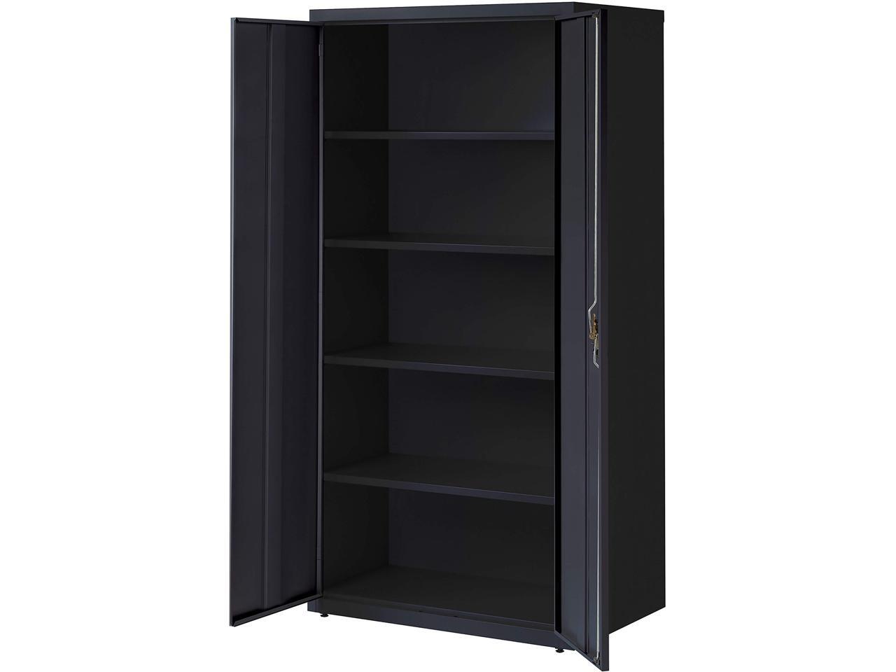- 24" x 36" x 72" - 5 x Shelf(ves) - Hinged Door(s) - Sturdy, Recessed Locking Handle, Removable Lock, Durable, Storage Space - Black - Powder Coated - Steel - Recycled - Assembly Required