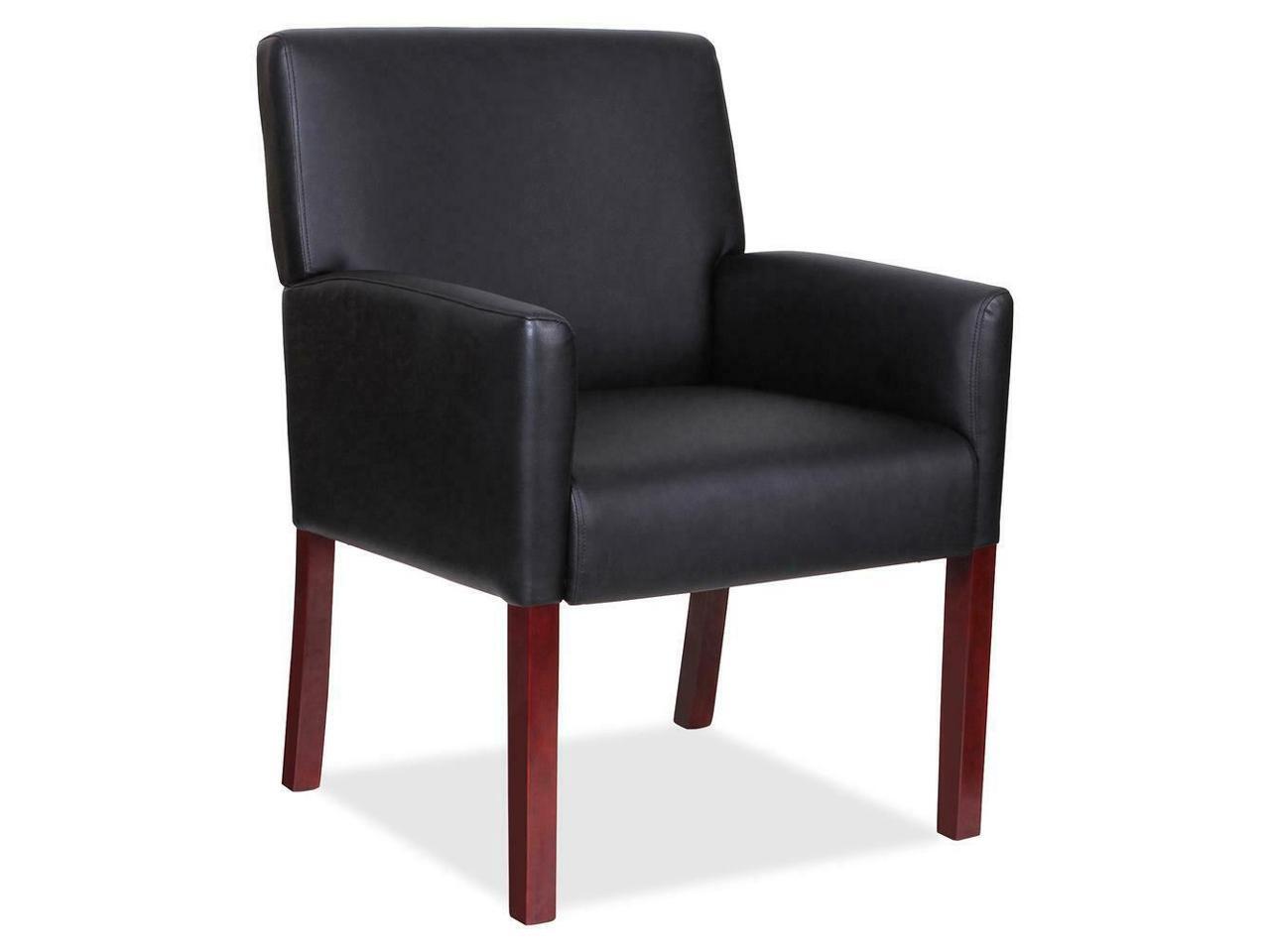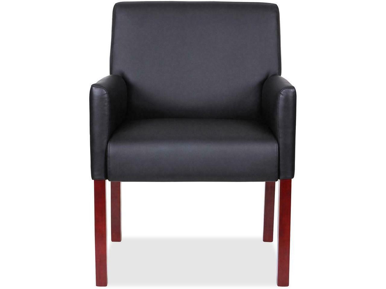 Lorell Full-sided Arms Leather Guest Chair - Black Leather Seat - Black...