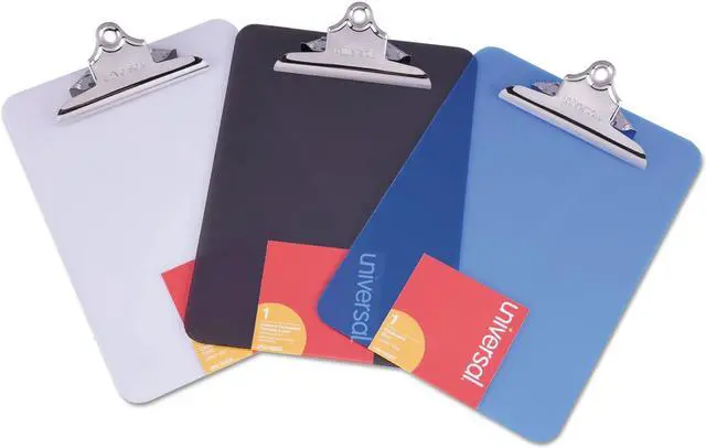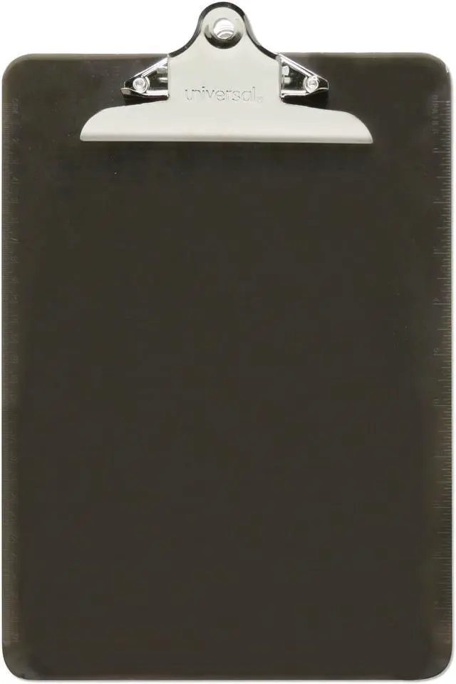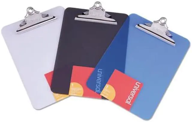Features durable plastic construction and built-in hanging hole. Attractive transparent board material available in three popular colors. Variety of colors allows for visual identification by project or department. Holds Paper Size: 8 1/2 x 12; Clipboard Actual Size: 9w x 12 1/2h; Clipboard Material: Plastic; Clip Capacity: 1".