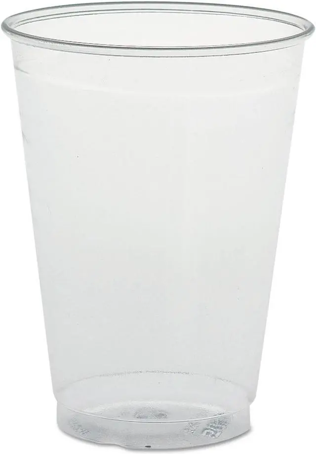 Crystal clear cups provide an appealing way to showcase beverages. Crack-resistant PET construction ensures that they are sturdy as well as attractive. Lids (sold separately) are interchangeable between popular drink sizes, helping conserve storage space. Cups work with multiple lid optionswith or without straw slots, domed, and with or without holesto accommodate any chilled beverage or treat youd like to serve. Clear cups are ideal for serving soda, juice, milk shakes and any other cold drinks. Tall; Flush Fill. Cup Type: Cold Cup; Interior Volume Capacity: 9 oz; Material(s): Polyethylene Terephthalate (PET); Color(s): Clear.