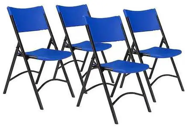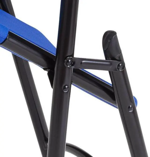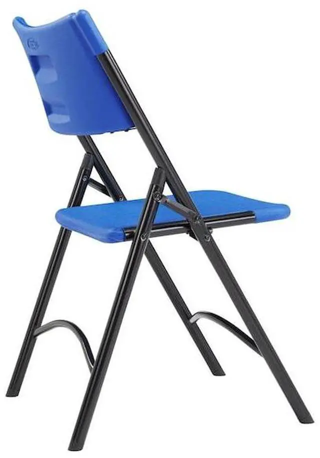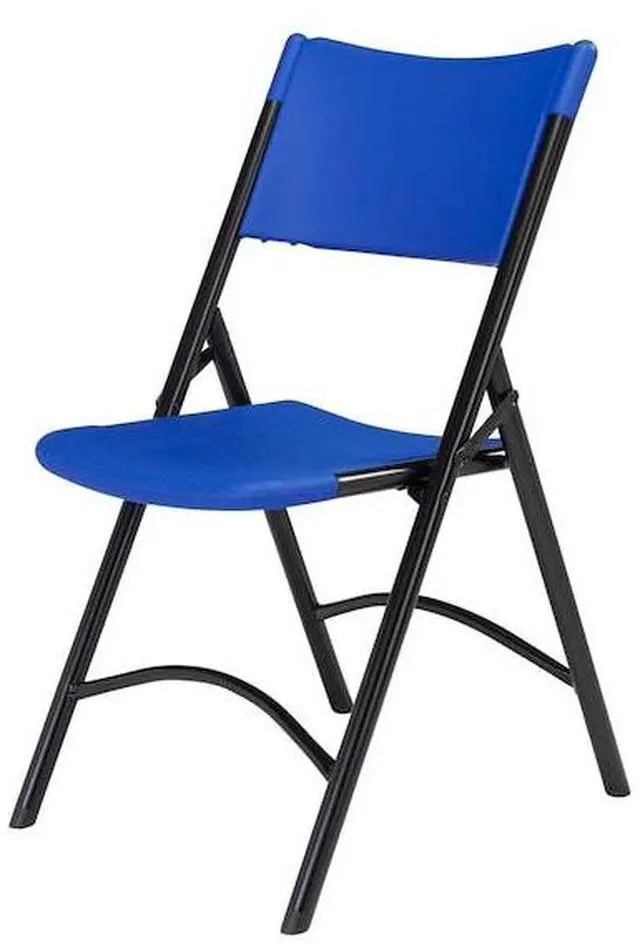 Features 19-gauge steel with metal underbracing on seat for added durability. Two cross braces for strength. Single hinges on each side for added stability and durability. Contoured seat and back for comfort. Available Colors: Light Grey seat/back and textured powder coated Grey frame. Red or Blue seat/back and powder coated Black frame.