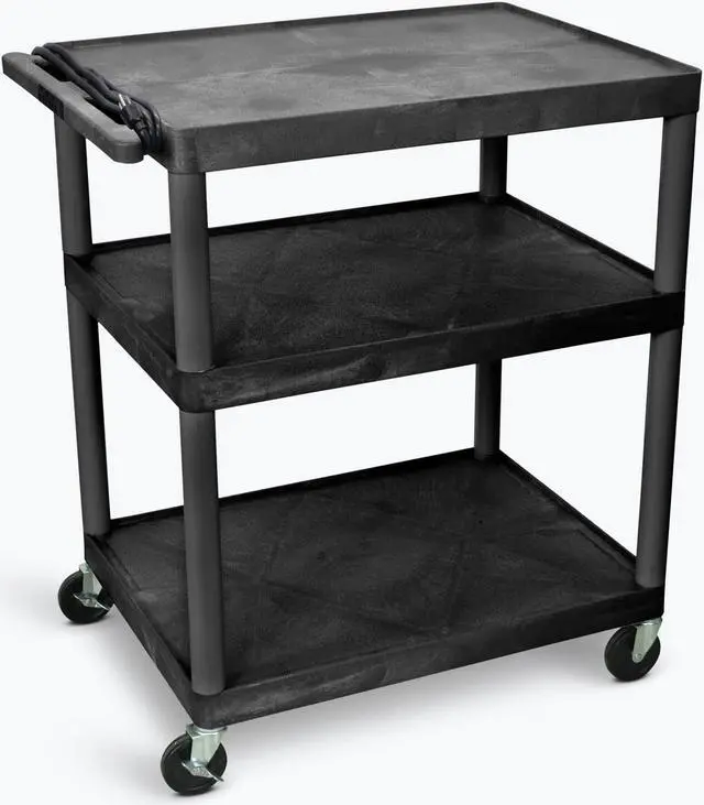 Luxor LP Series presentation station AV carts are made of recycled high density polyethylene structural foam molded plastic shelves that will not scratch dent rust or stain.Feature