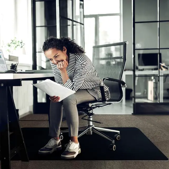 Advantagemat Black Vinyl Rectangular Chair Mat for Carpets - 48" x 60", Floortex's Black Advantagemat's help make your desk work space more ergonomic, by taking strain off of your legs and back, this is done by providing an easy-glide surface. The key reason chair users purchase floor mats is to protect a small or large area of flooring from indentations and scuffs caused by rolling office chairs, along with dirt and spills, therefore extending the life of your floor surface. For a more heavy duty chair mat, Floortex offer a clear polycarbonate and glass option. All of Floortex's PVC/ Vinyl mats are recyclable, made with up to 25% recycled material as well as being made using 25% renewable energy, This plastic mat is a suitable protector for low pile carpets, also available for hard floor applications, Gripper back for use on low pile carpets up to 1/4" including padding.