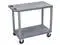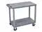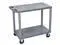 Multipurpose utility cart ideal for use as serving or storage cart and more. Ergonomic push handle molded into top shelf.Rolling cart with four 5" casters, two with locking brake (full swivel), two fixed non-locking casters. Color: Gray.Includes two 1.625" high flat shelves with 0.25" retaining lip to secure items from sliding off.Measures 35.25"W x 18"D x 31.5"H with a clearance between shelves of 22.5" for easy access.Maximum weight capacity of 500 lbs (evenly distributed). Assembly required. Made in the USA.