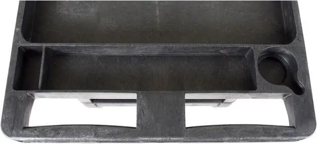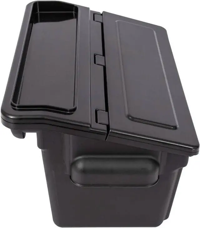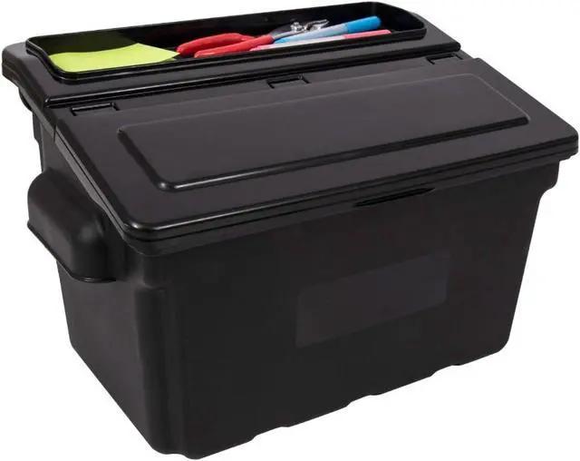 weight capacity, a hinged, snap-on lid with integrated tool tray, plus molded-in grab handles for easy carrying. Sturdy polypropylene construction with an easy to clean surface ensures years of reliable use and superior resistance to damage from hard impacts. FEATURES, TUB