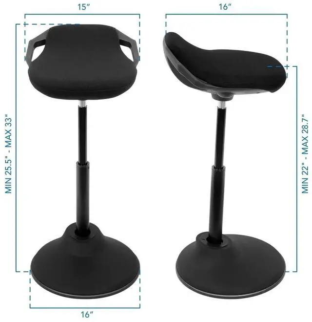 The MI-931 ergonomic sit stand stool is the ideal for all-day comfort at home or in the office. Whether you're leaning or sitting, drawing, writing, or typing, the premium high-density foam upholstered seat cushions achieves the perfect balance between firmness and softness. Able to adapt to your height, and workflow, the easy to reach button underneath the seat gives you the flexibility to quickly adjust the height of our office leaning stool from 24. 8" to 34.6". Reduce strain on your body by utilizing the 360° tilt feature. We've also added carrying handles on the sides for easy transport and assembly requires zero tools to put together
