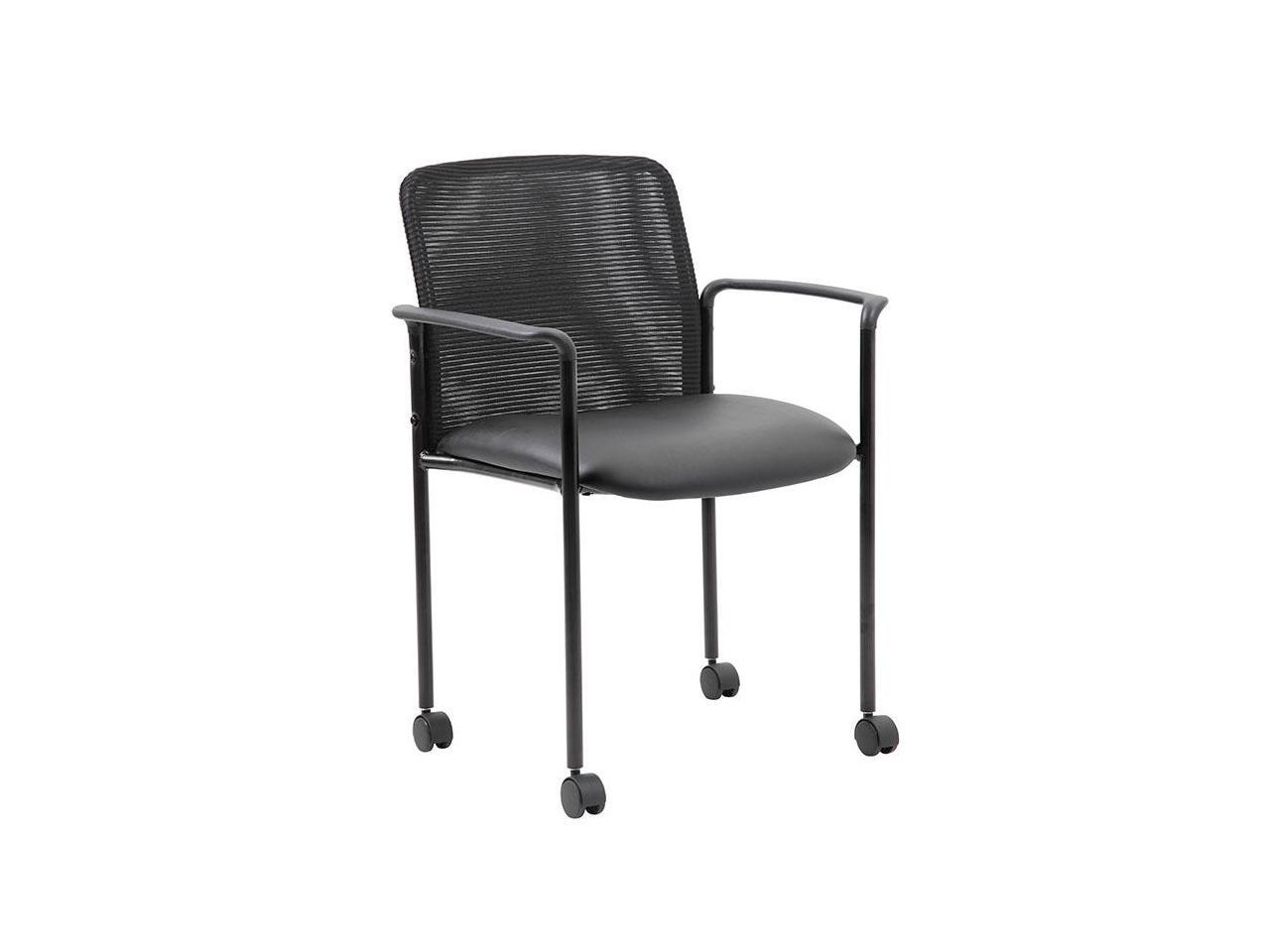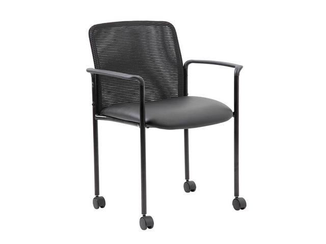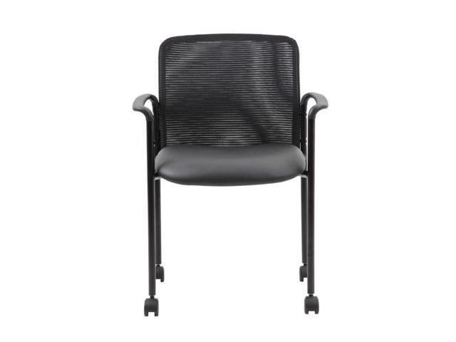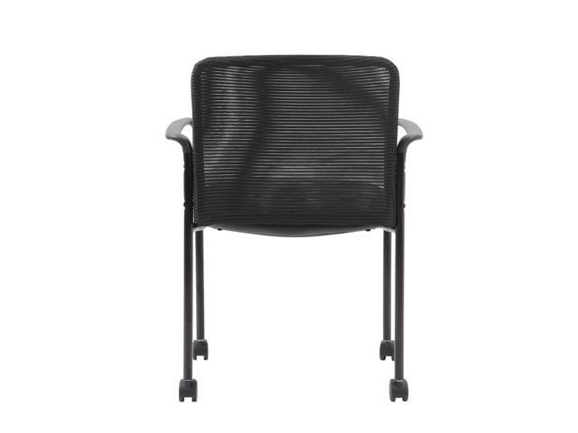BOSS Black Stackable Mesh Guest Chair with Casters (B6909R-CS)