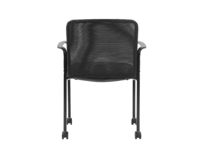 The stackable mesh guest chair in black is the perfect addition to any room or office. For smaller spaces, the chair can be stacked 4 high and stored away when not in use