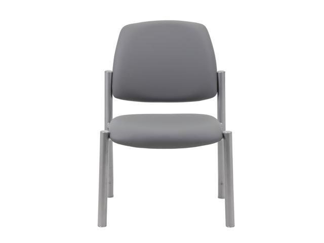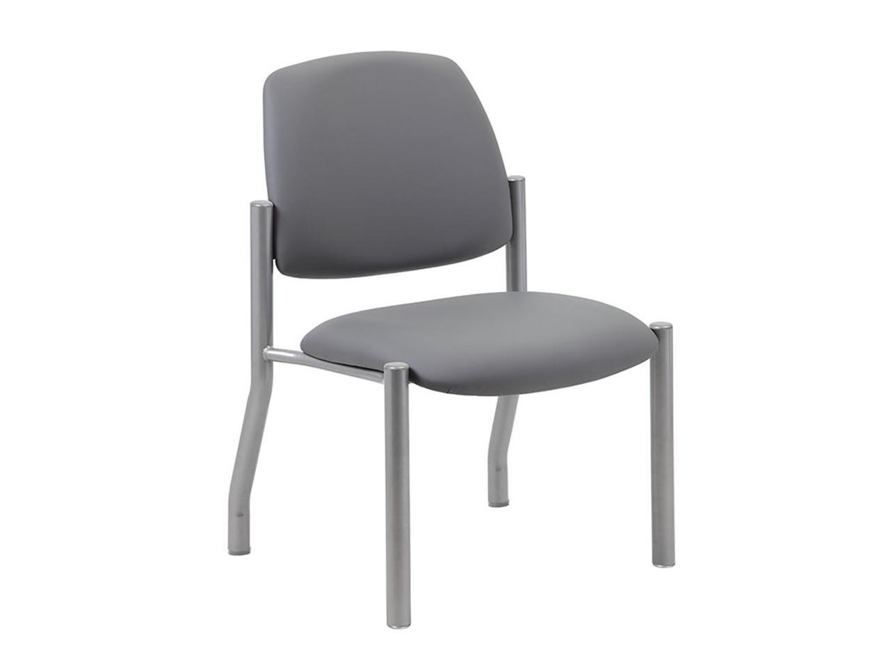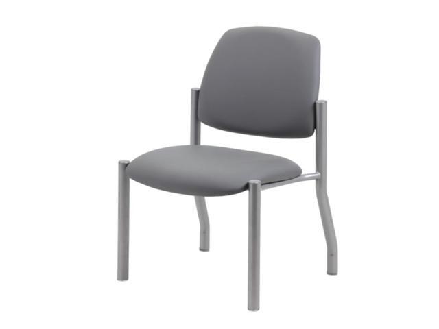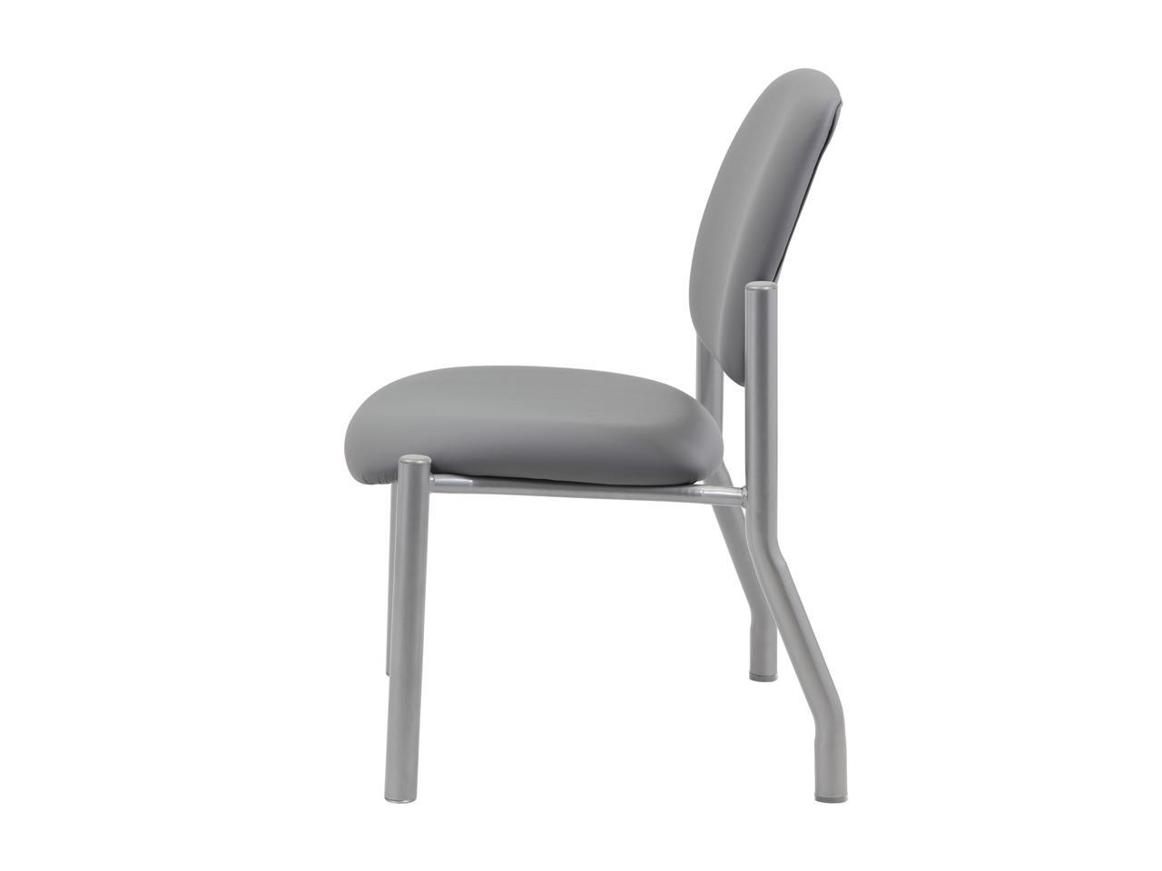 Boss Office Products Heavy Duty Armless Vinyl Mid Back Guest Chair for Reception, Meeting, Conference Room - Grey, 300 lb Weight Capacity