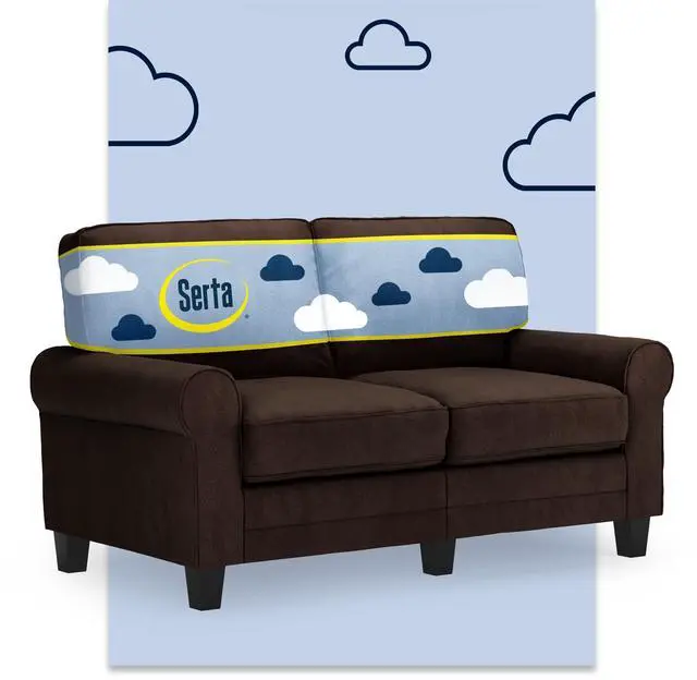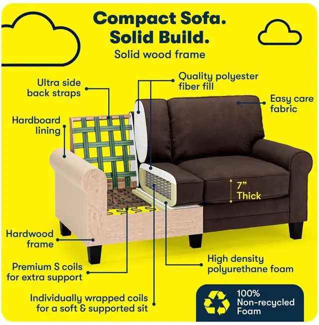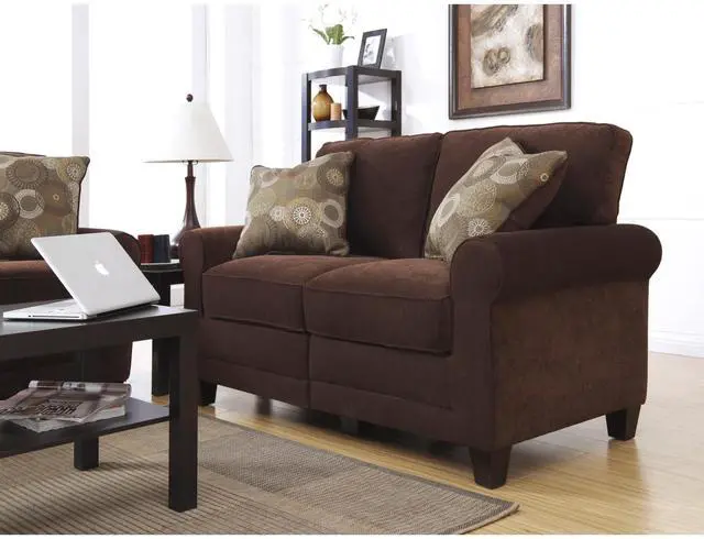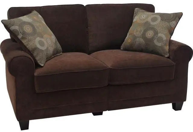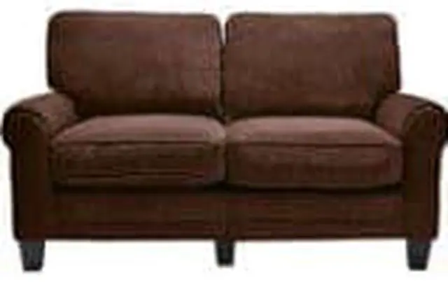 Wood frame; polyester fabric upholstery; 35"H x 61"W x 32.5"D; accommodates up to 2 people; 500-lb. weight capacity; assembly required
