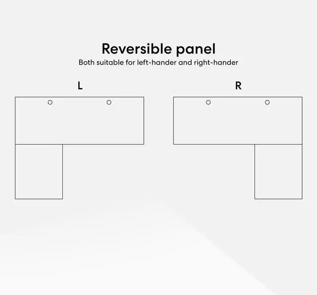 Easily switch the shorter side from left to right to fit any corner, perfect for righties or lefties.