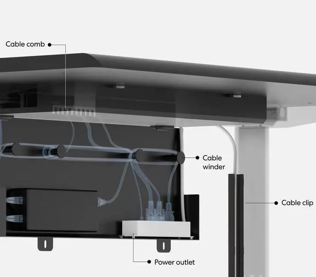 A built-in hook and cable tray hides wires and clutter for a clean, distraction-free workspace. Set up in just 30 mins, no extras needed.