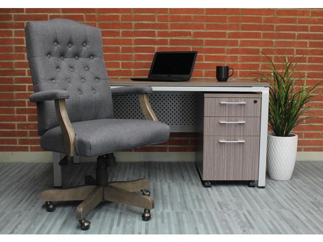 - When it comes to class and style the executive commercial grade linen chair in slate grey with driftwood finish frame is top of the line
