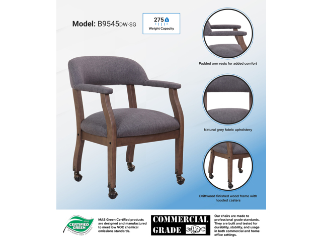 BOSS Modern Captain’s Guest Chair in Slate Grade Commercial Grade Linen W/ Caste (B9545DW-SG)