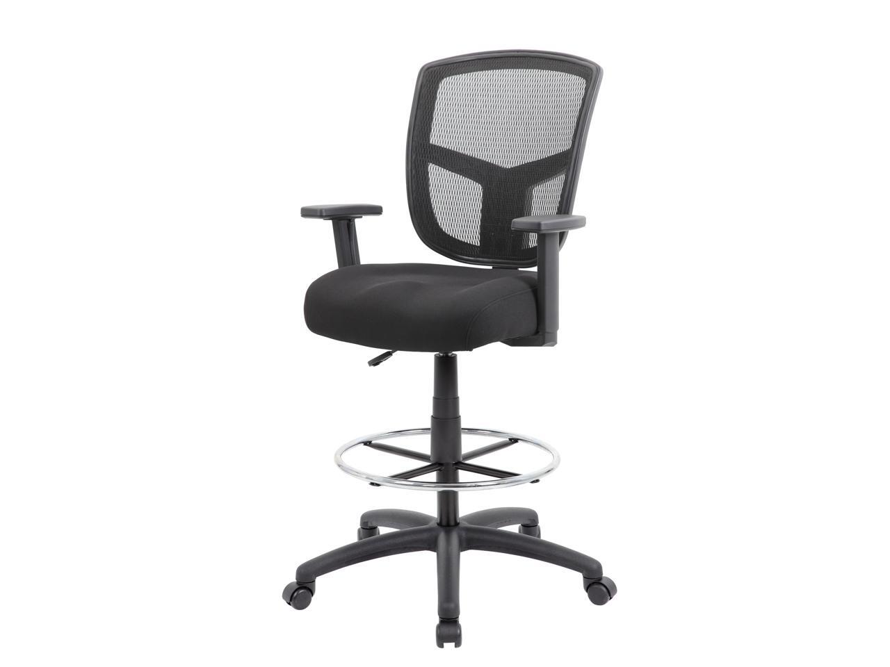 The drafting stool provides a pneumatic gas lift mechanism for adjustable height options, making this great for a desk or drafting table