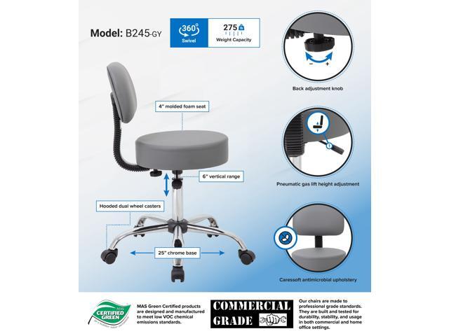 BOSS Grey Be Well Medical Spa Professional Adjustable Stool with Back Cushion (B245-GY)