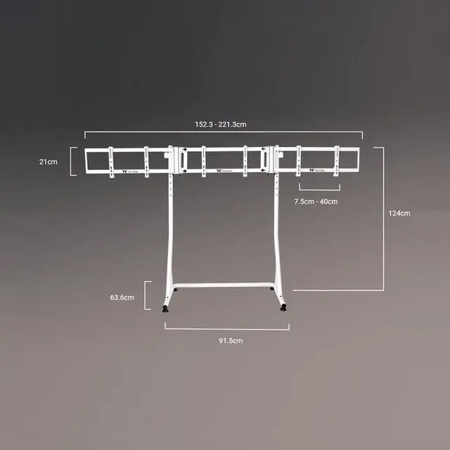 Built for an immersive experience compliment your simulator set up with the Triple Racing Monitor Stand Pro, made from powder coated steel for durability. Height adjustment and the wide base makes this a great addition for simulators, as well as those with motion systems. VESA mounting makes installing a display easy and straight forward with multiple VESA sizes supported. Single monitor configuration supports up to 55 and triple configuration up to 32 curved and 34 flat is supported.