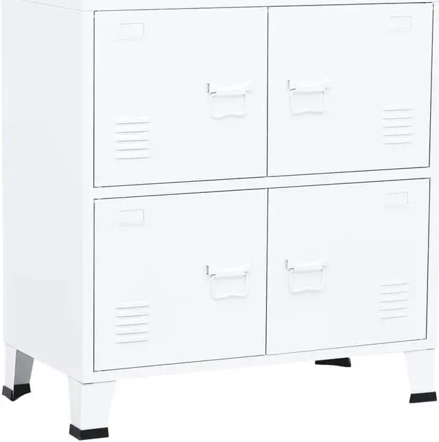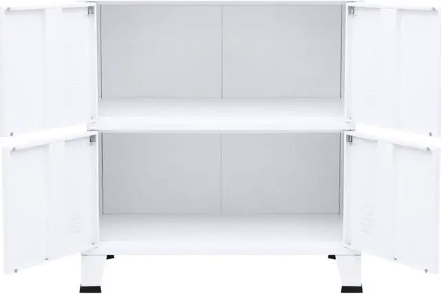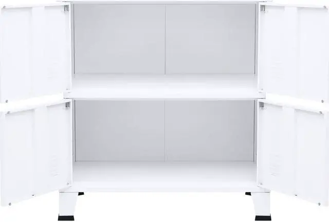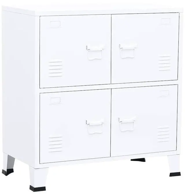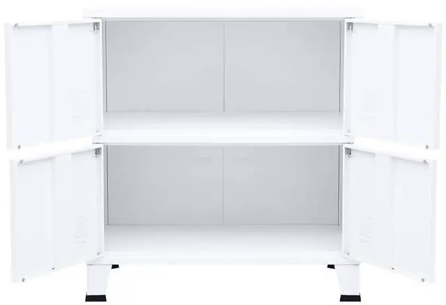 This industrial storage chest will keep your house clean and well-organized! With a shelf and name tags on doors, this storage cabinet allows you to neatly sort your items into different categories. It suits any office decor thanks to its iconic design and industrial charm. The steel feet with plastic covers prevent your floors from getting scratched up. This chest is made of steel, making it durable as well as easy to clean. Each door is equipped with a name tag holder and air vent, which allow you to neatly sort your items and underline the industrial look.