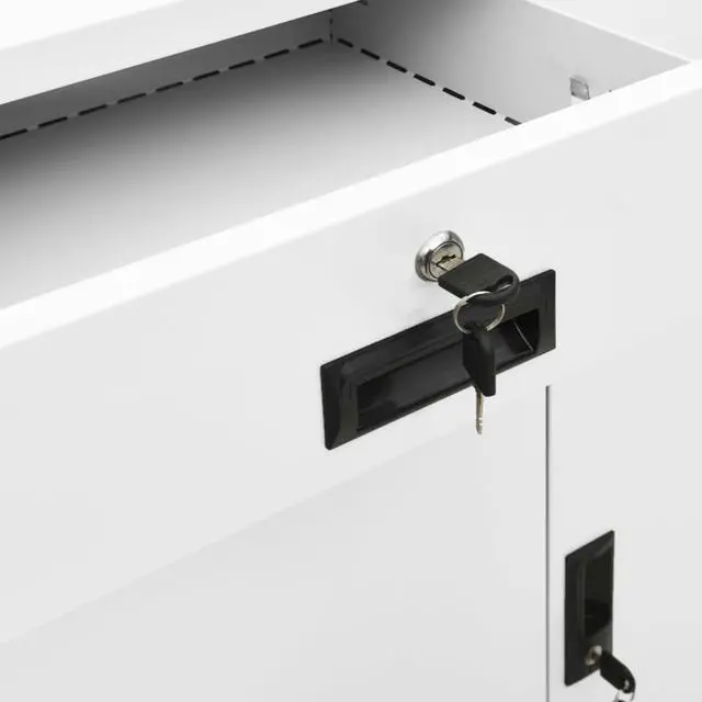 This office cabinet, with a typical filing cabinet design, is ideal for file storage. This office cabinet is made of steel, making it durable as well as easy to clean. With 2 adjustable shelves, this file cabinet allows you to neatly sort your files into different categories and keep files safe. Drawers with 3 sections ballbearing runners ensure smooth opening and closing, even under increased load. This cabinet will suit any office decor thanks to its iconic design.