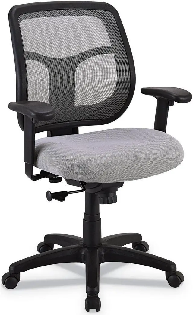 The Apollo is a perennial favorite, combining value, comfort, adjustability and quality, and featuring a breathable, color coordinated mesh back that matches the comfortably contoured and padded waterfall seat. Tilt tension control. 2.8" ratchet back height adjustment. Recommended Application Area(s): Conference & Meeting; General Office & Task; Seat Color: Silver; Back Color: Silver; Color Family: Silver.