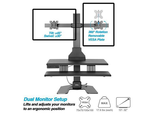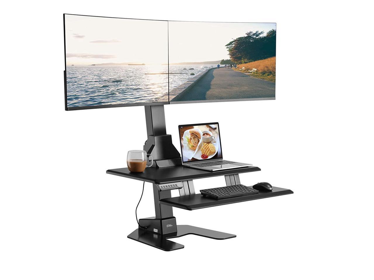 Dual 32" Monitor Electric Standing Desk With Huge Keyboard Tray Extra Large 28"X 16" Spacious Tabletop Motorized Automatic Height Adjustable Sit To Stand Table Sturdy Small Footprint